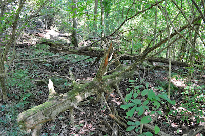 They shouldn't have, because almost certainly they couldn't all be past their natural lifespan, since the land was clearcut within at most the last three centuries and it's likely been something like one century since farming ceased. But they died anyway, in the past decade or two, and many are lying on the ground, rotting.