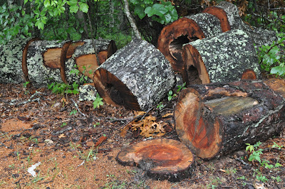 In fact when I arrived at the parking area, the the first thing I saw was an old stump and beyond, a pile of freshly cut logs.